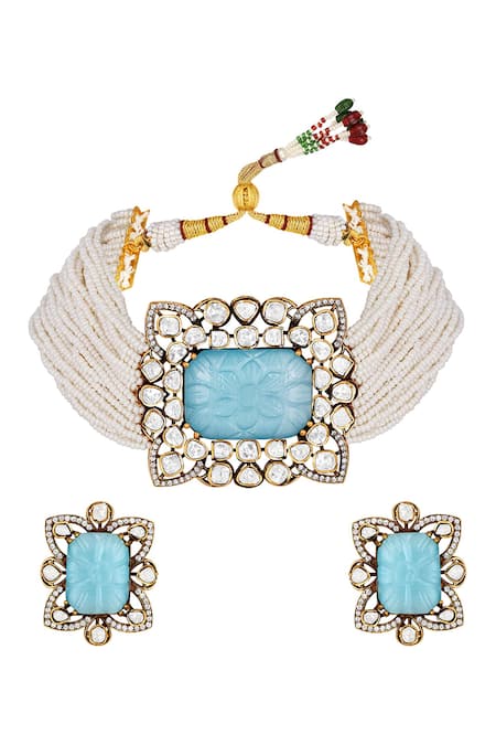 Gold Plated Stones Carved Onyx Choker Necklace Set