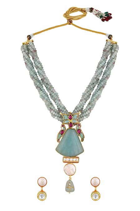 Buy_HRISHA_Green Pearls, Stones Kundan Polki Embellished Choker Necklace Set _Online_at_Aza_Fashions