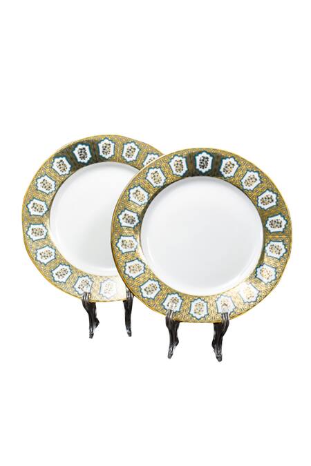 Blue Porcelain Floral, Geometric Chinar And Work Dinnerware Set