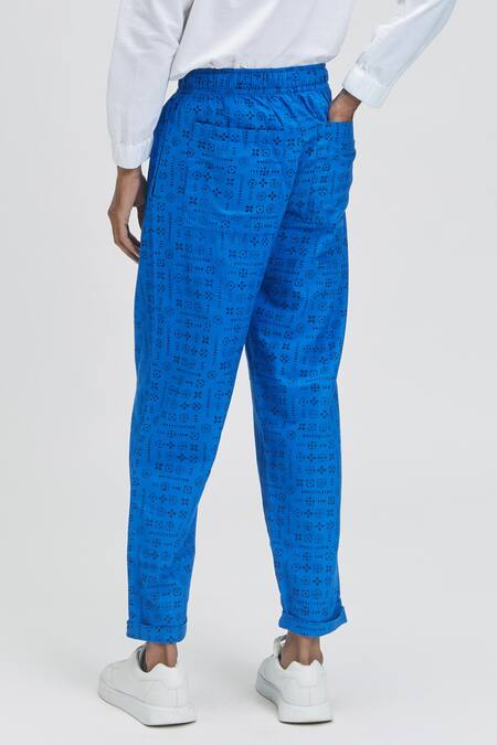 Blue 100% Organic Handloom Oxford Cotton Moon Bloom Idle Print Pant