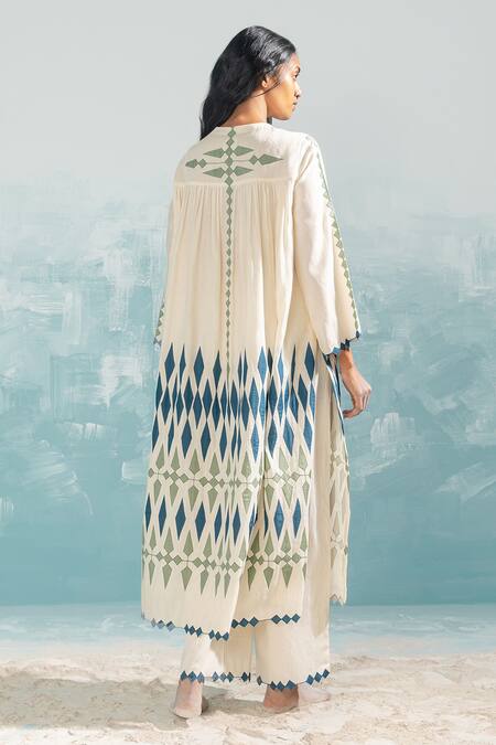Ivory A-line kurta featuring geometric contrast hand-cut applique work all-over