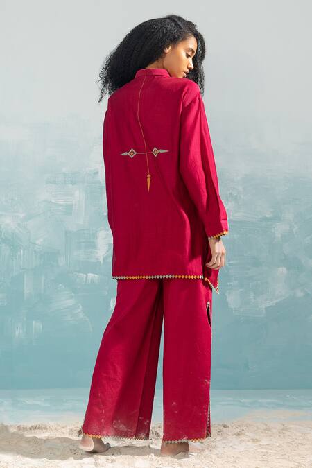 Pink cotton silk chanderi shirt featuring applique and cutwork details