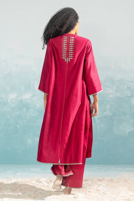Persian pink kurta featuring geometric contrast hand-cut applique work on the yoke and back