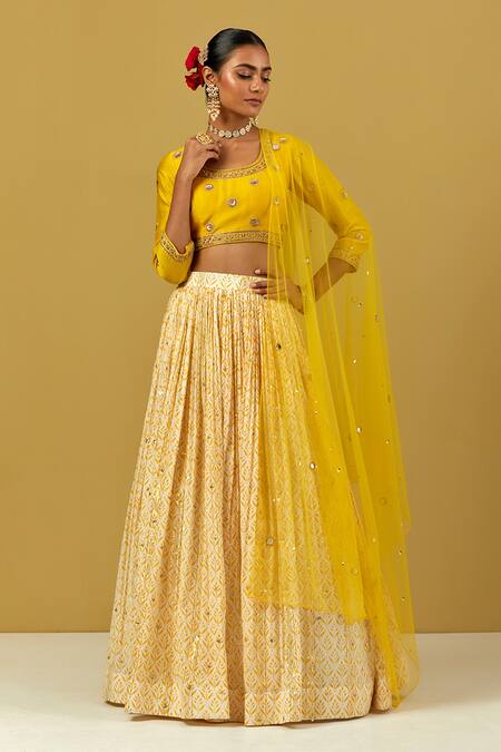 Yellow dupatta in net fabric featuring intricate hand embroidered chita work