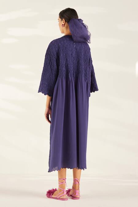 Purple Silk Crepe Plain Round Meadow Smocked Pattern Dress