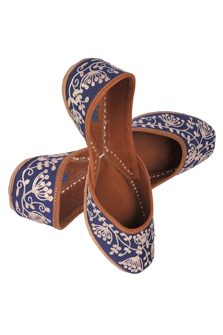 Navy blue silk juttis featuring intricate pittan embroidery and a cushioned sole