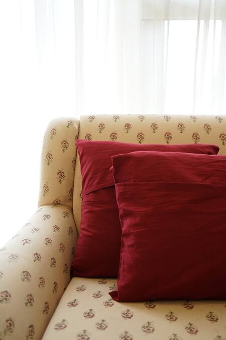 Maroon cotton cushion covers with rangoli block print.