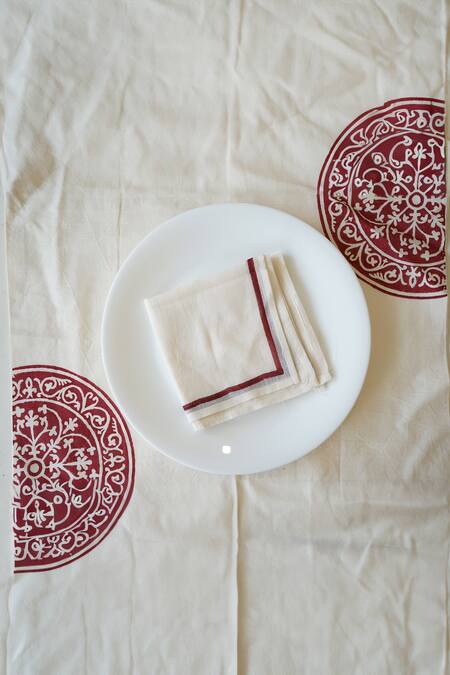 Buy_Inheritance India_White 100% Cotton Rangoli Pattern Table Mat And Napkin Set_at_Aza_Fashions