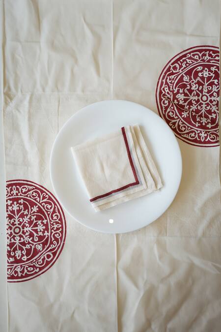 Buy_Inheritance India_White 100% Cotton Rangoli Print Table Mat And Napkin Set_at_Aza_Fashions