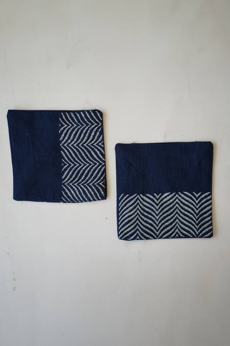 Cobalt blue set of 6 coasters with placement wave block prints.