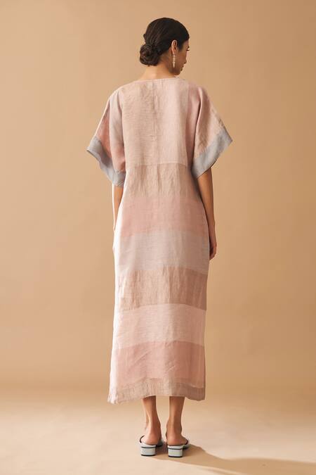 Buy_Manan_Pink Insha Handloom Linen Kaftan Dress_Online_at_Aza_Fashions