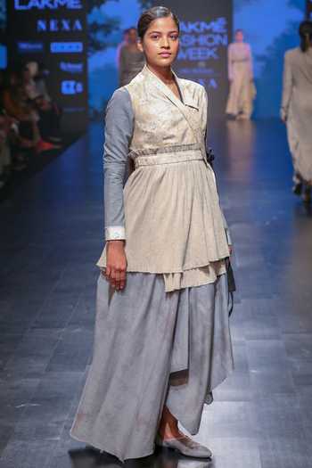 Ensuring you make a breathtaking access at your friend's housewarming party is this grey-hued dress, coordinated with a beige hued overlap jacket. Crafted out of cotton and cotton, this soothing hued ensemble will be your year round go-to.