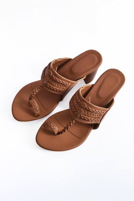Buy_Irasoles_Brown Handcrafted Kolhapuri Block Heels_Online_at_Aza_Fashions