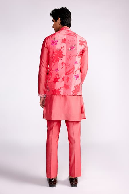 Pink Silk, Satin Embroidery, Sequins Floral Printed Nehru Jacket