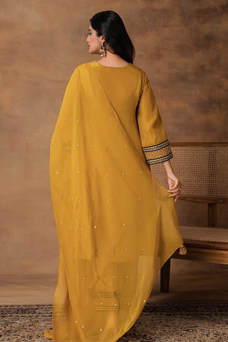 Gold Silk, Organza Embroidery Round Neck Yellow Kurta Set