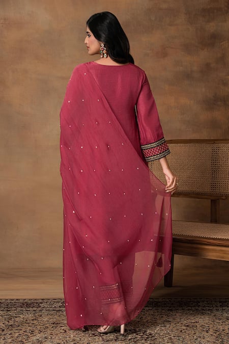 Pink Silk, Organza Embroidery V-neck Kurta Set