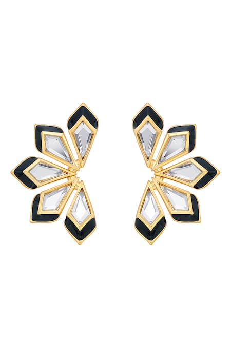 White floral motif stud earrings featuring hand cut mirror embellishments