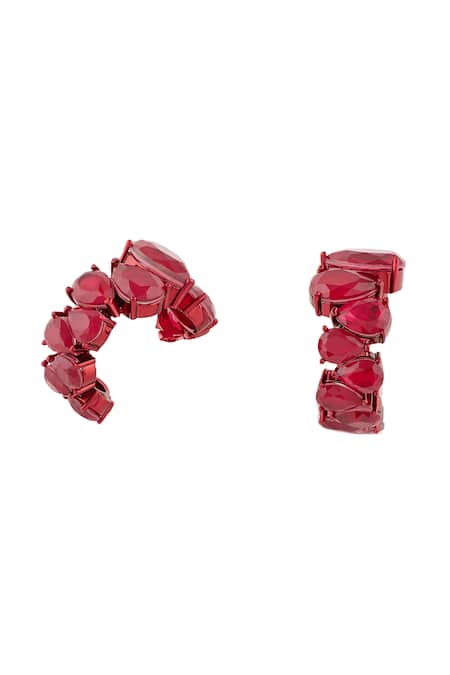 Red Imitation Gemstones Crimson Glow Statement Rhodium Plated Hoops