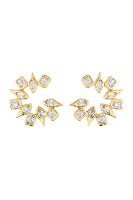 Gold Plated Crystals, Cut Work Stone Hoops