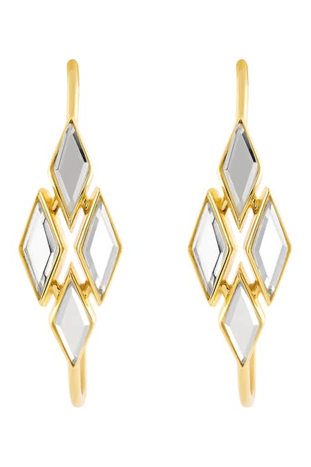 Gold 18kt gold plated brass hoop earrings featuring rhombus mirror embellishments.
