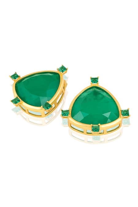 0.3 micron & 18kt gold plating, Cubic zirconia stone embellishments, Green doublet stone with faceted cut
