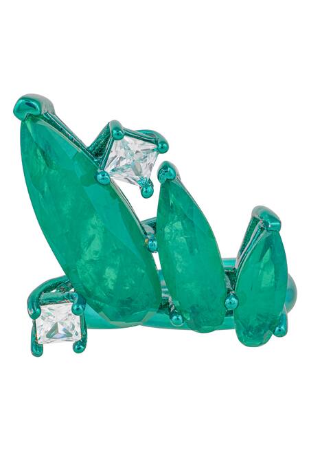 Green Imitation Diamonds Emerald Flame Embellished Ring