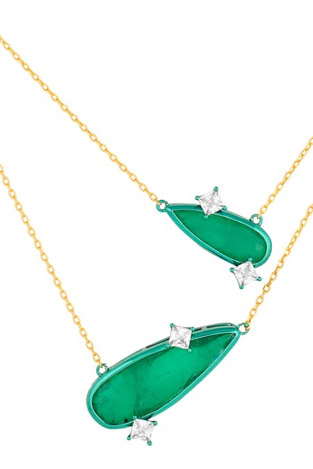 Emerald layered pendant necklace featuring drop doublet stones and CZ embellishments