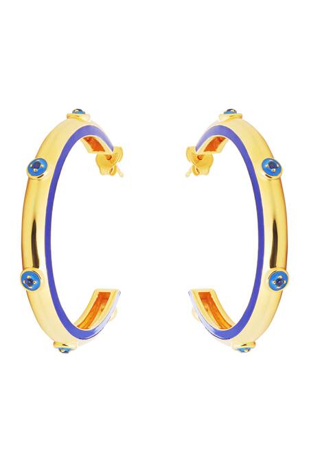 Gold Plated Crystals Evil Eye Embellished Hoops