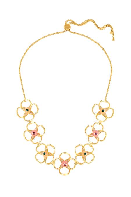 Multi-color choker necklace featuring floral motifs crafted in brass