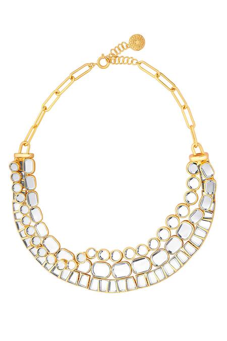 White layered necklace featuring geometric pattern mirror embellishments