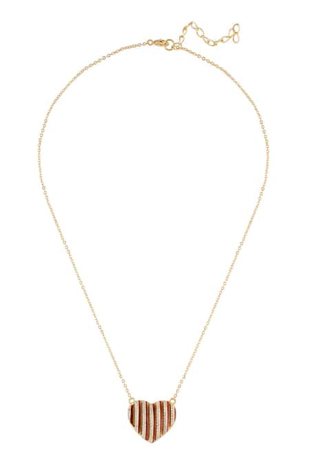 Red heart-shaped pendant necklace featuring cubic zirconia embellishments. E-coated with a spring ring clasp for secure closure.