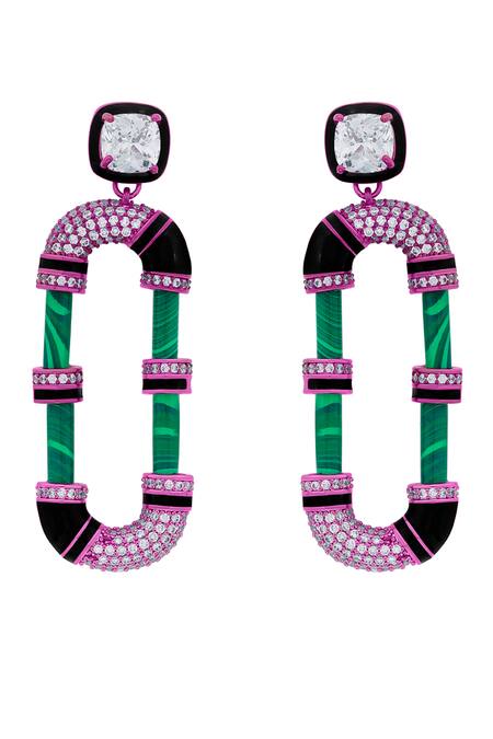 Screw back clasp for secure fitting, Combination of malachite and cubic zirconia, Intricate enamel detailing