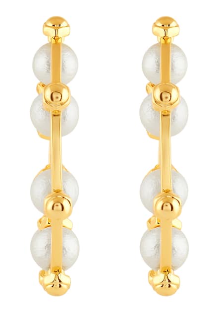 Gold 18kt gold plated brass hoop earrings featuring multiple pearl embellishments inside the hoop.