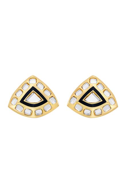 18kt gold plated studs with mirror polkis, enamel embellishments and geometric pattern.