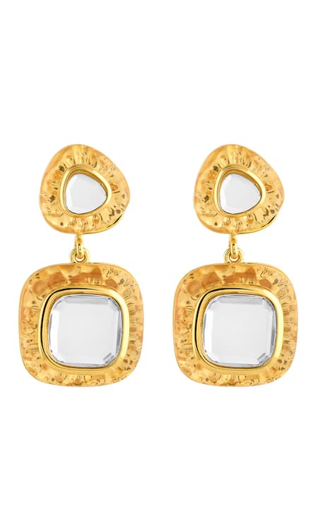 Gold Plated Mirrors Libra Finish Stone Embellished Drop Earrings
