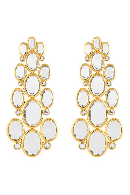 Gold Plated Mirrors, Stones Limelight Oval Long Earrings