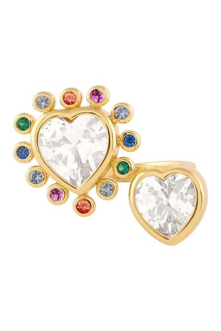 Multi-color heart ring crafted in brass with 18kt gold plating
