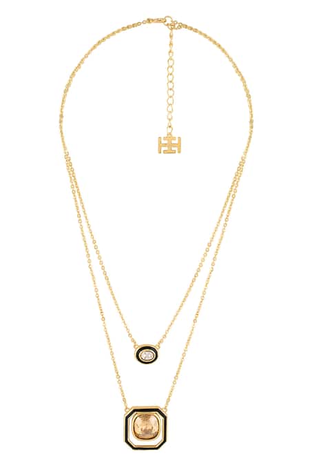 Gold Plated Crystals Layered Pendant Necklace With Embellishments