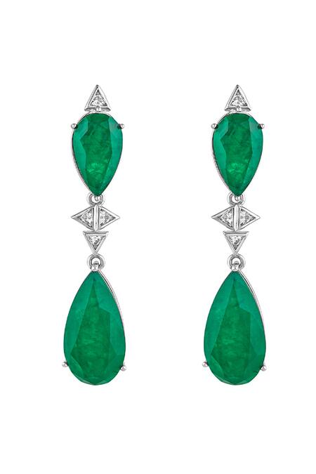 Green Crystals, Stones Pear Cut Emerald Drop Danglers