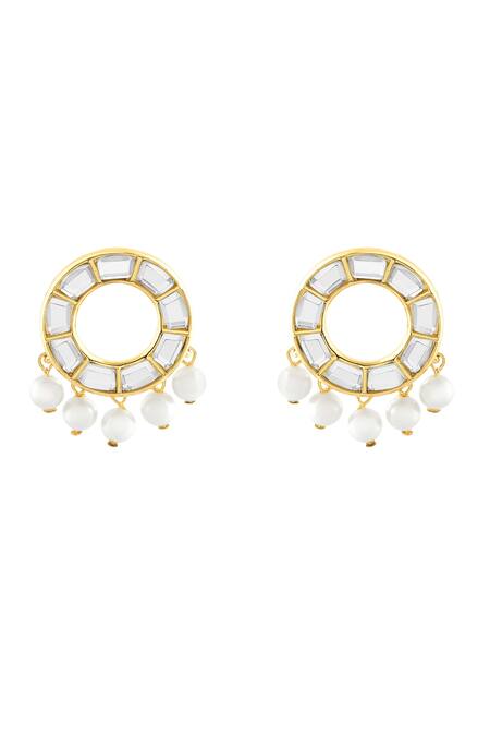 Gold Plated Pearls, Mirrors Deco Embellished Dangler Earrings
