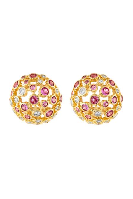 Pink stud earrings featuring a round design embellished with pink and clear crystal stones