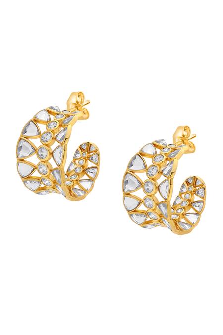 Gold Plated Mirrors, Cubic Zirconia Ruhaaniyat Hoop Earrings