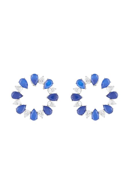 Blue Crystals Sapphire Glow Rhodium Plated Circle Studs
