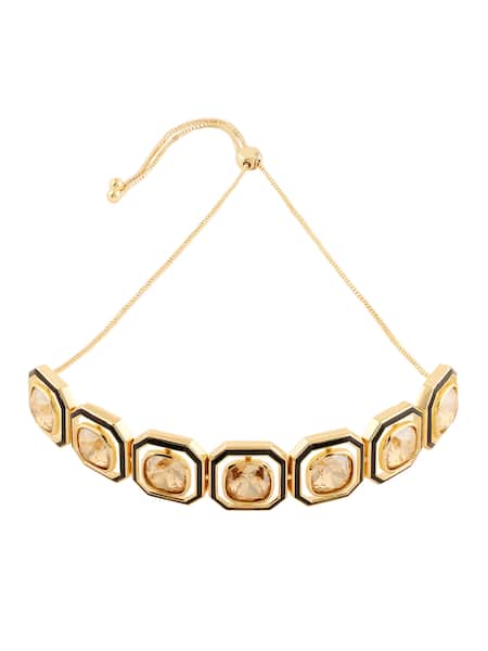 Gold choker featuring mocha mousse crystal embellishments with enamelled work