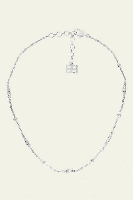 Silver choker necklace featuring cubic zirconia stone embellishments