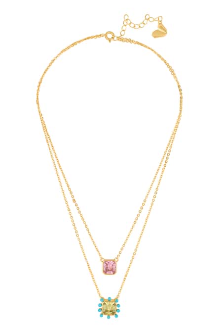 Multi-color layered necklace featuring crystal zirconia stones and 18kt gold plating