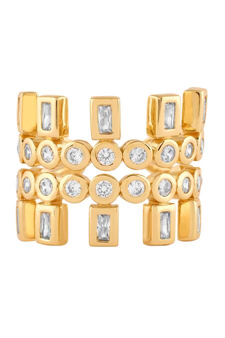 Gold statement ring crafted in brass with 18k gold plating and adorned with crystal zirconia stones