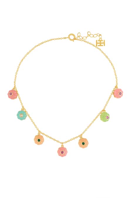 Flower charms with gemstone embellishments, Lightweight design for everyday wear, Adjustable chain length for a perfect fit