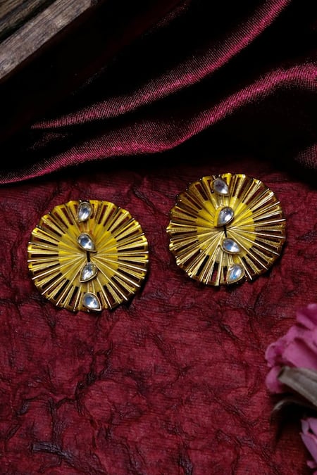 Gold Plated Embroidery Wave Embellished Earrings