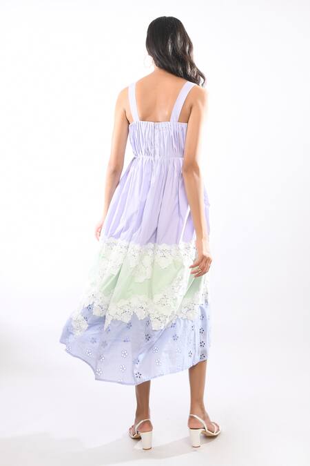 Purple Cotton Square Neck Pleated Bodice Maxi Dress